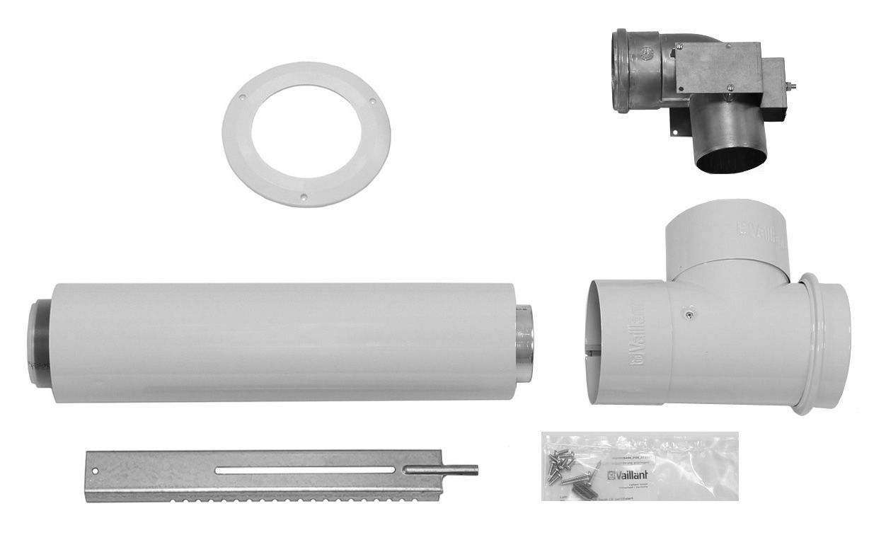 80/125/Al Комплект 1000 мм для горизонтального прохода дымохода/воздуховода через стену с отверстиями для проведения измерений Vaillant