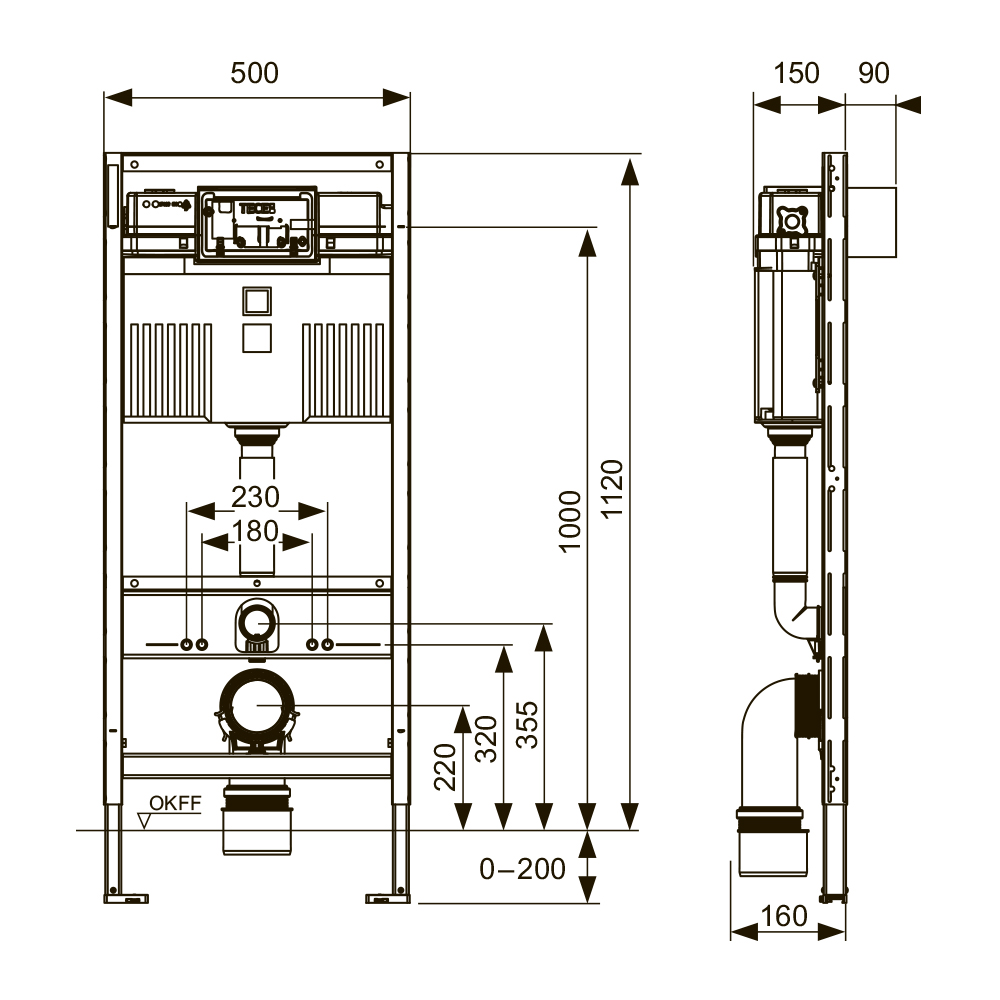 Застенный модуль для установки подвесного унитаза (h=1120 мм, гл.=150 мм), фронтальное расположение, TECEprofil