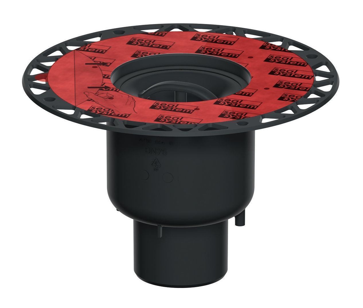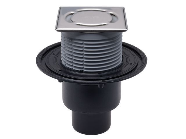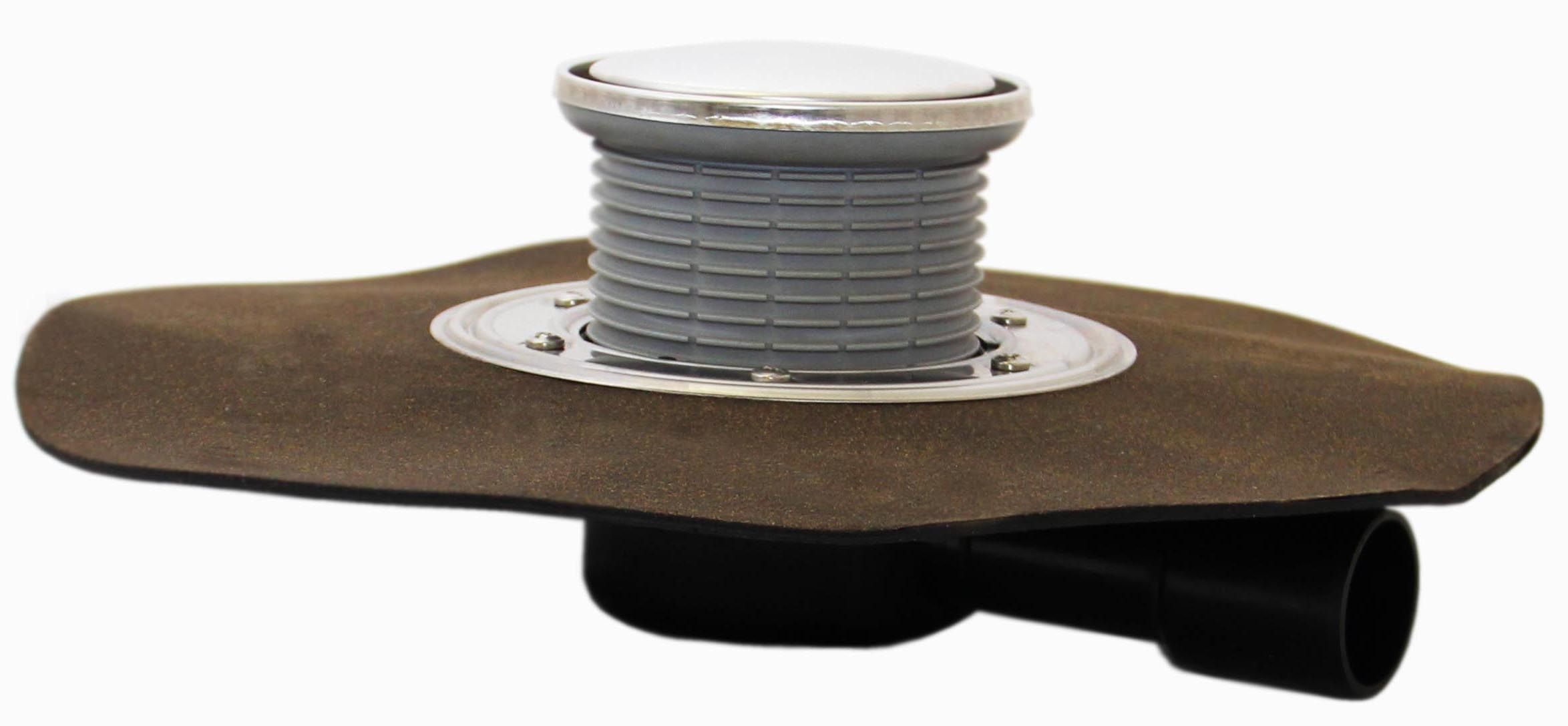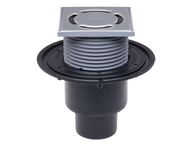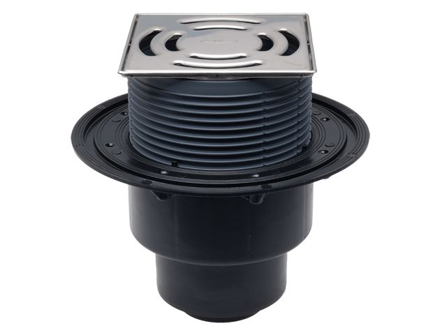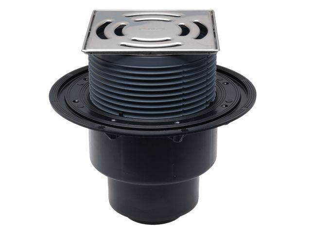 Трап вертикальный DN50/75/110 (решетка 115x115), 0.67 л/с, гидроизоляционное полотно, пластиковый подрамник, HL