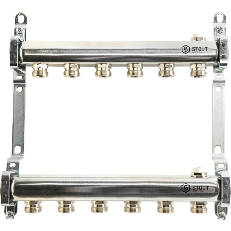 Коллекторная группа распределительная нерегулируемая 1" с 8 выходами Евроконус 3/4", STOUT