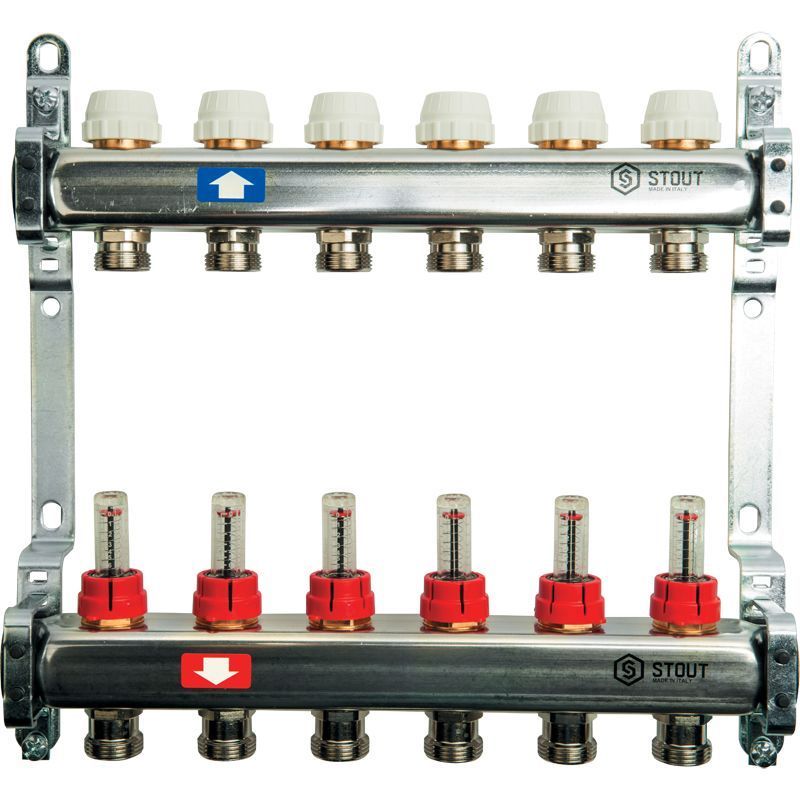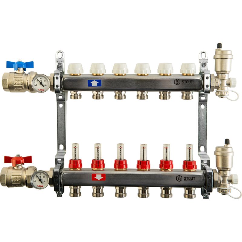 Коллекторная группа распред. 1" с 12 выходами Евроконус 3/4" с расходомерами, STOUT