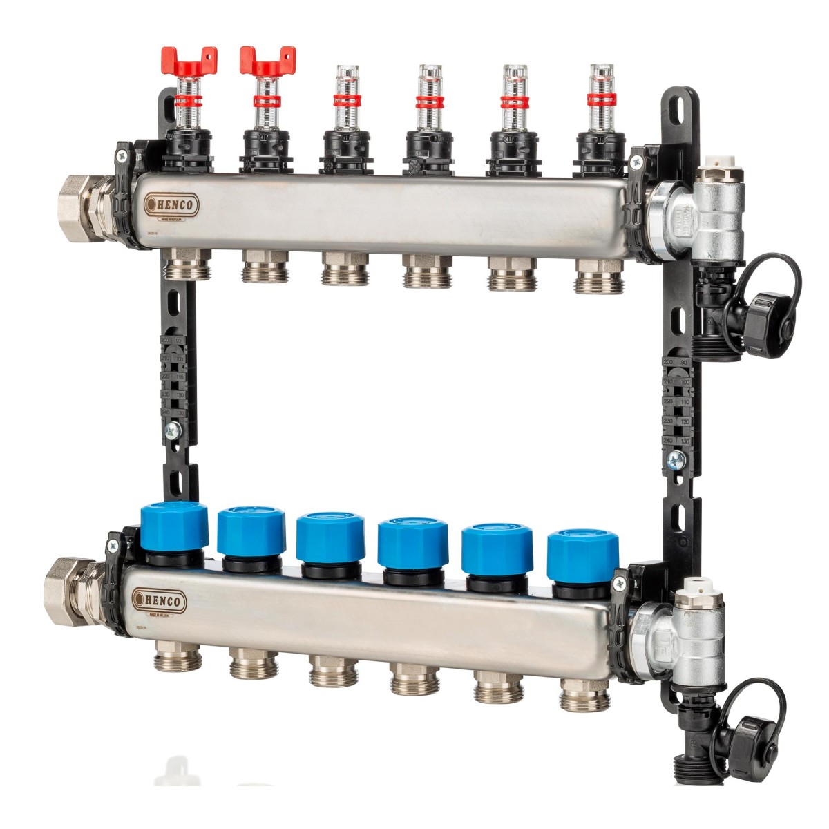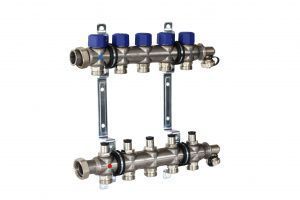 Коллекторная группа распределительная 1" с 5 выходами Евроконус 3/4", с расходомерами, 50 мм, Henco