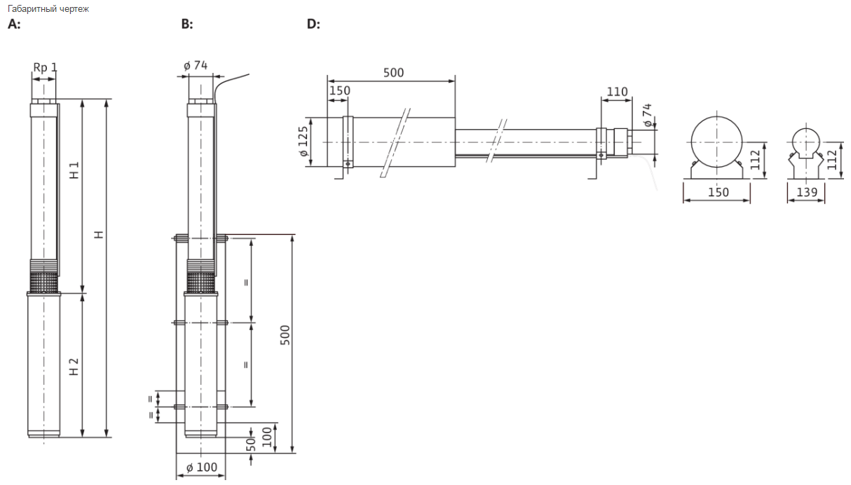 Вид оборудования Насосы с резьб. подкл. Диаметр подключения, дюйм 1 Мин. диаметр скважины, дюйм 3 Номинальная мощность - P2, кВт 0.55 Макс. расход до, м3/час 2.6 Макс. напор до, м 67 Подключение к сети, В 3-400 -