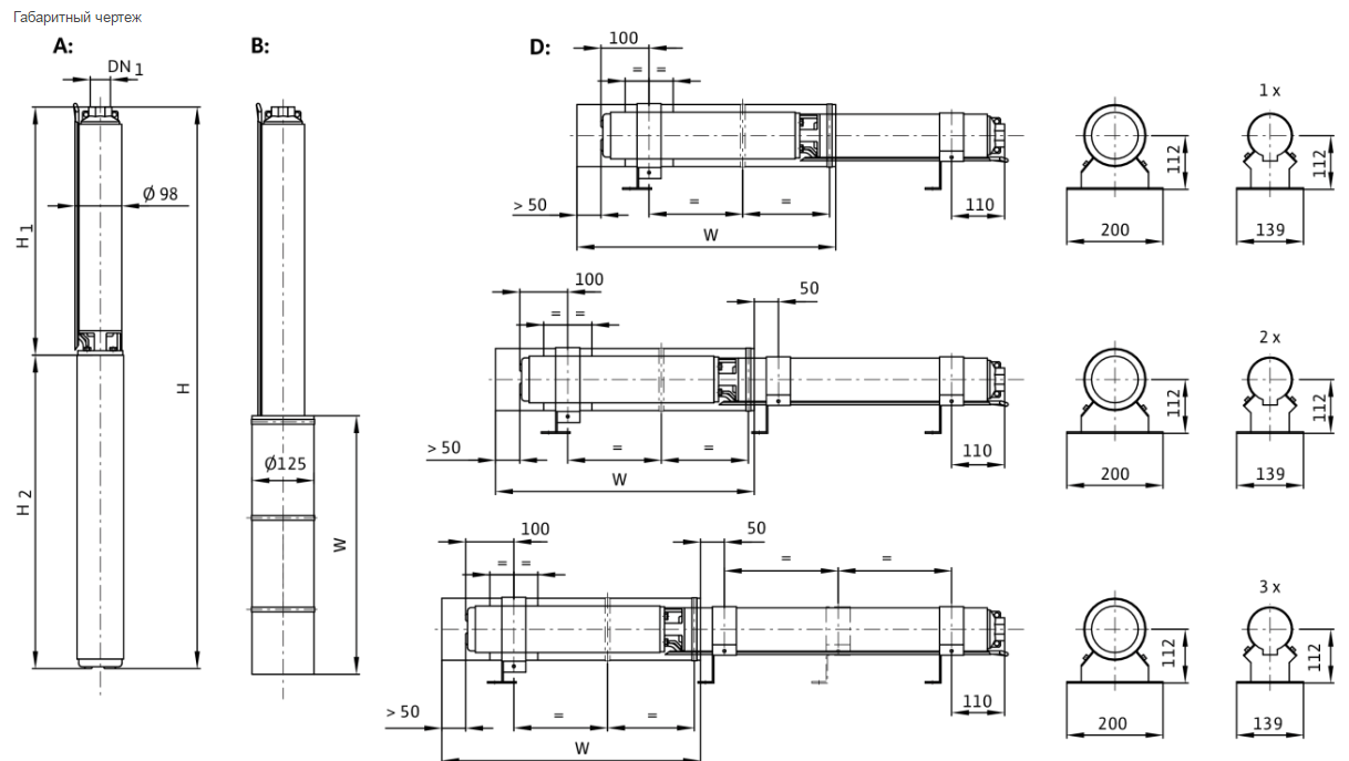 Многоступенчатый погружной насос 4" с регулируемой частотой в исполнении со стяжными лентами для вертикального или горизонтального монтажа.Назначение: